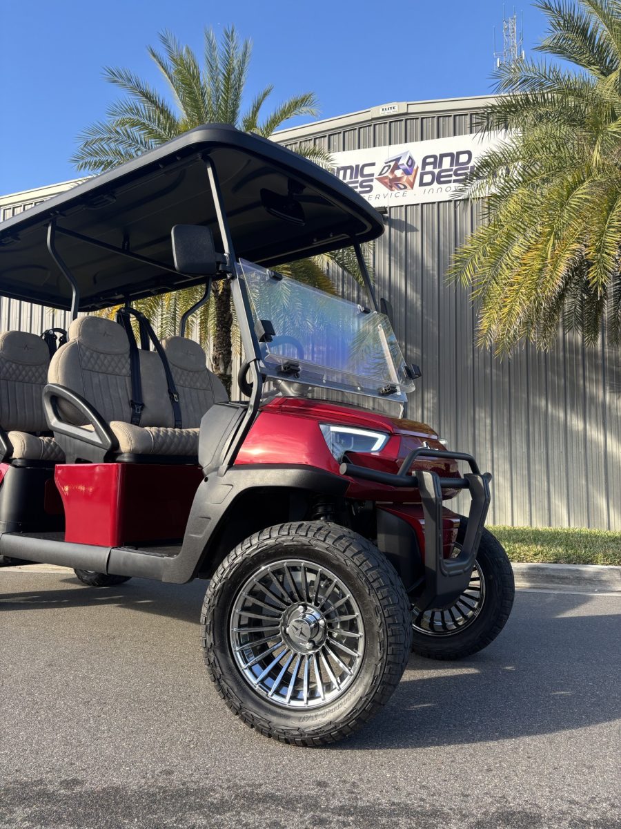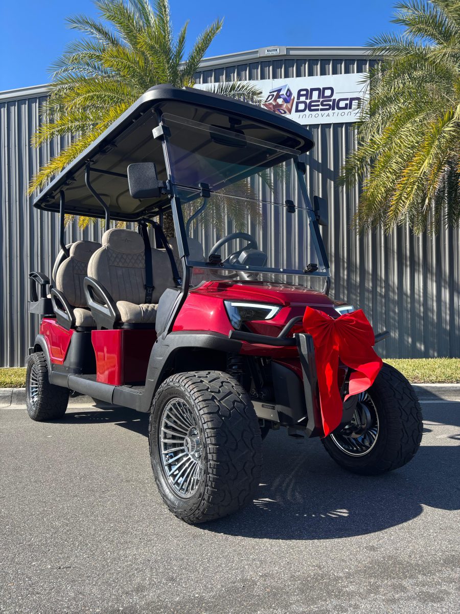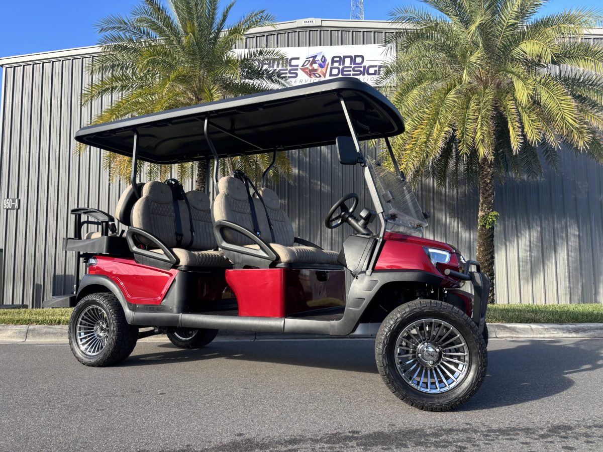 2025 Atlas Golf Cart 6 Passenger Ruby Red Street Legal Lifted Lithium Loaded BT Premium Seats Pebble