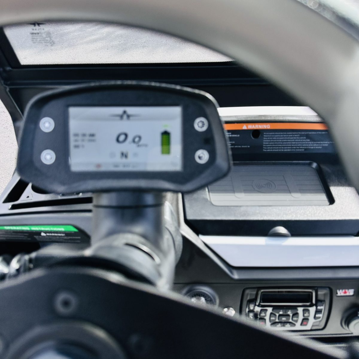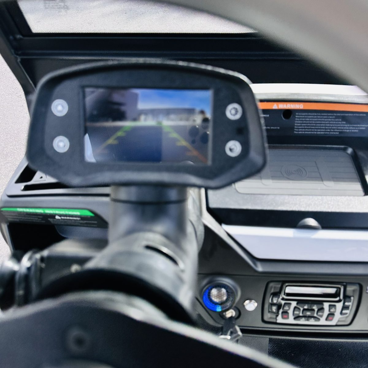 – Steering Column display with Back Up Camera, SOC, Speed, Weather, Time, Etc.
