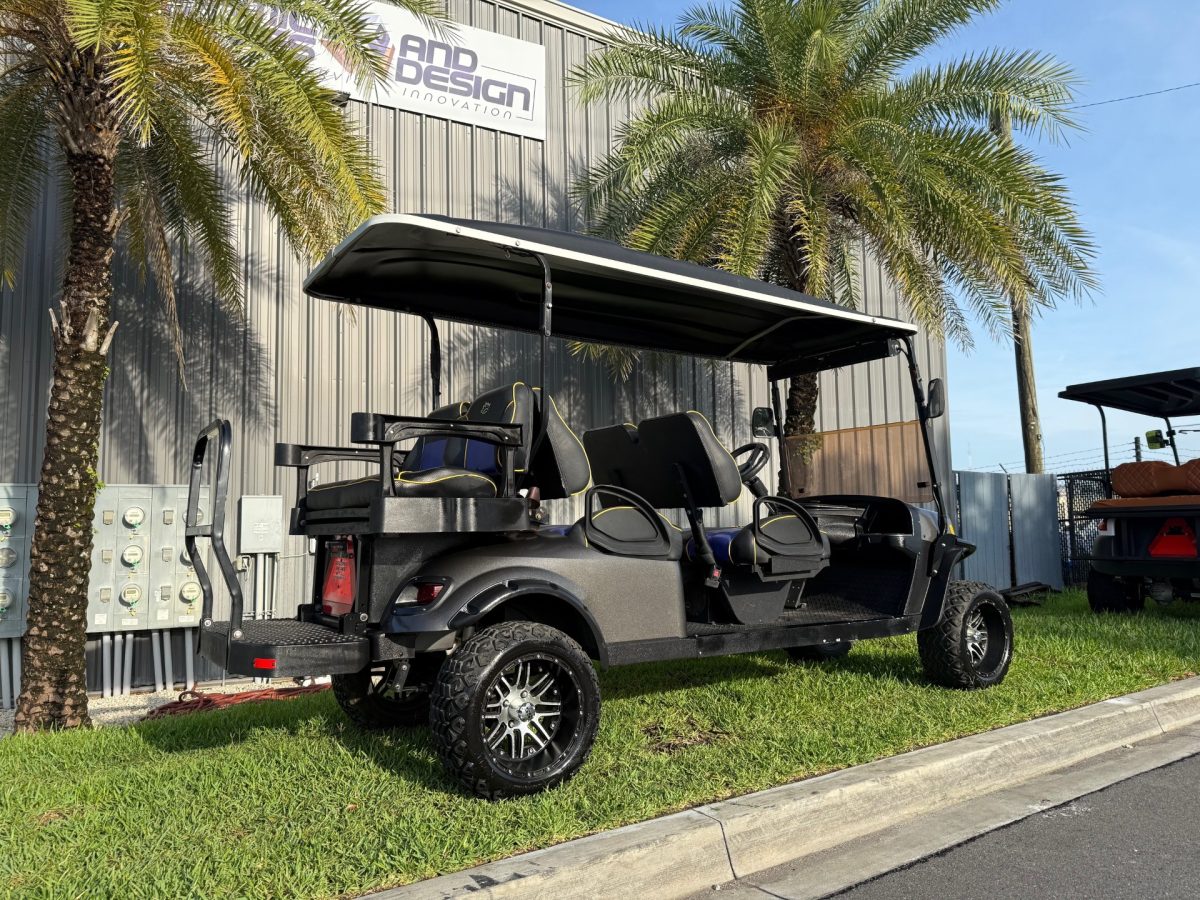 6 Passenger Street Legal EZGO Sport Navitas w/ 160ah RoyPow Wet Sounds Sub + BT Sound Bar