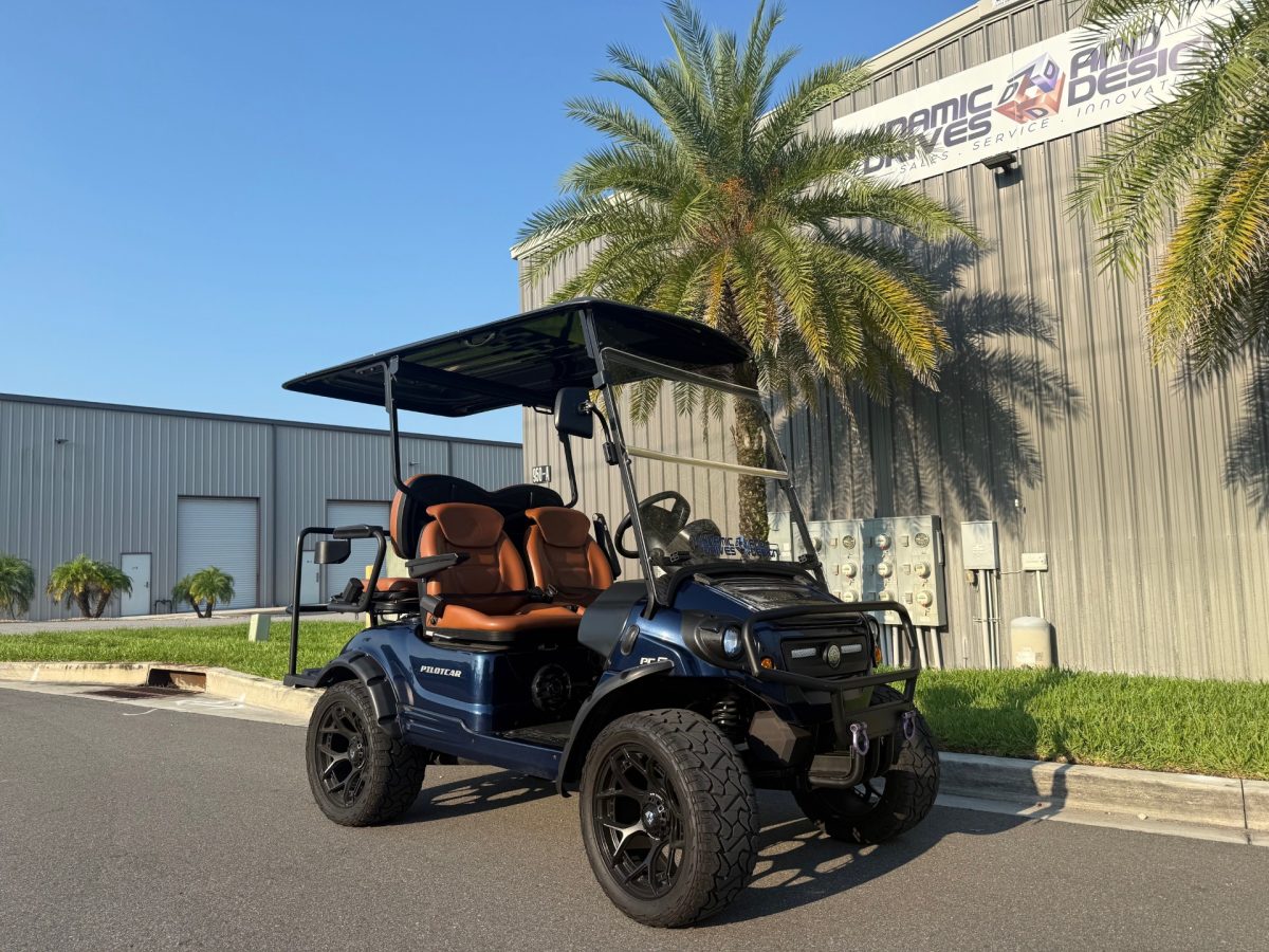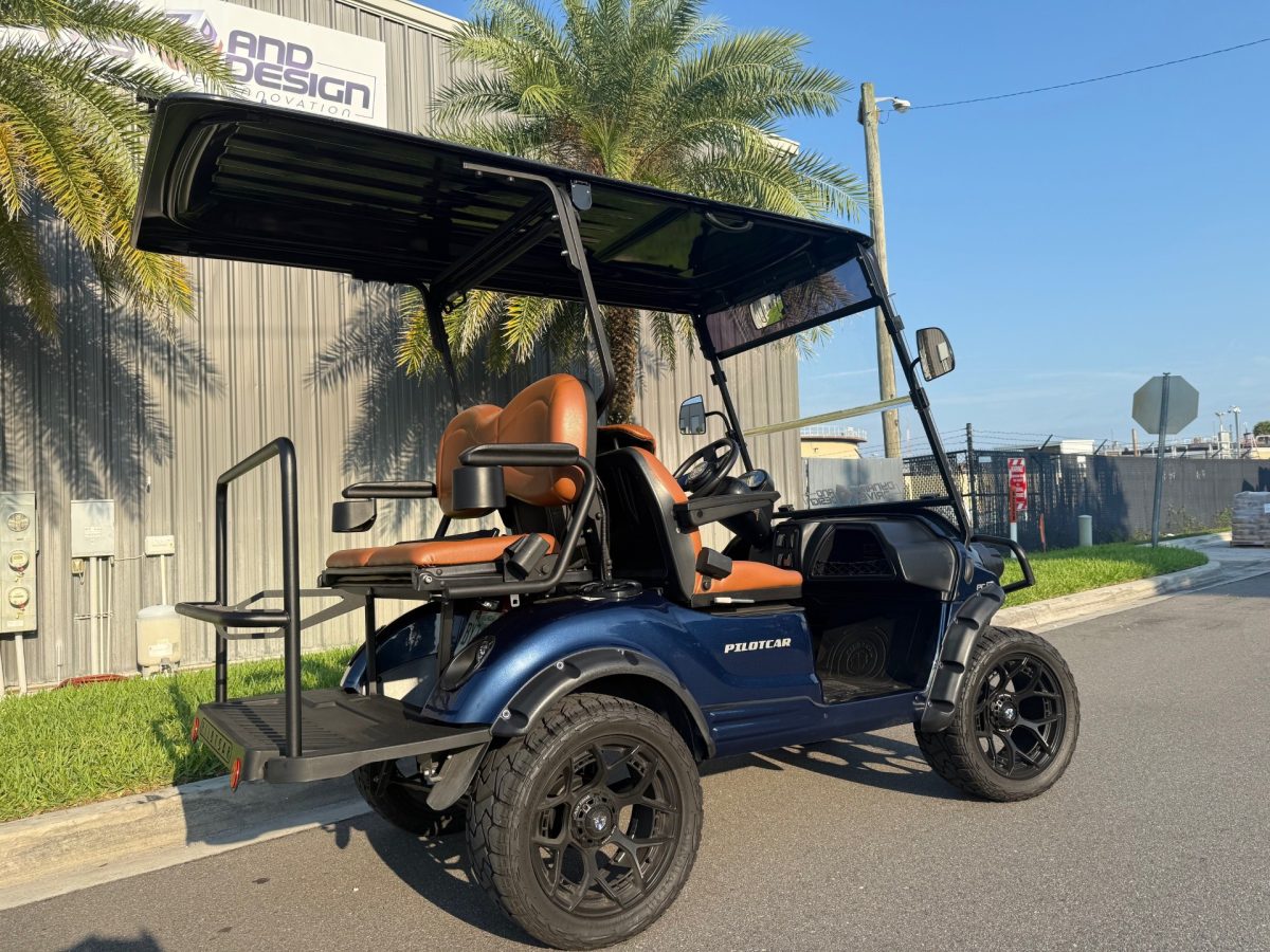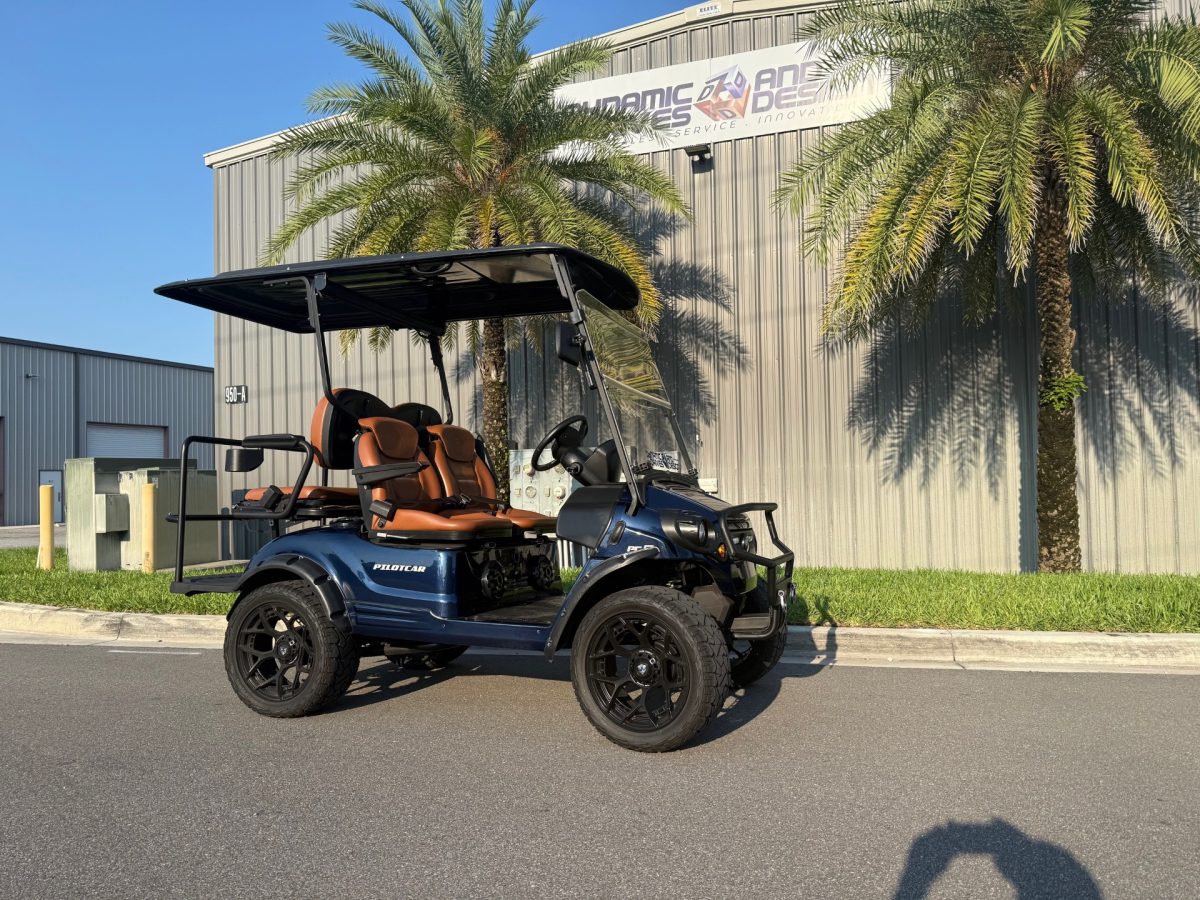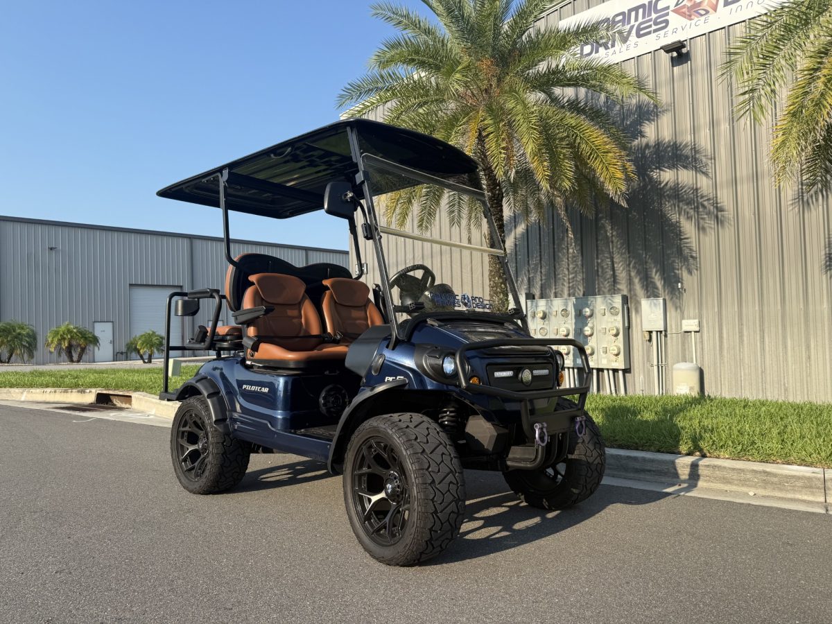 Pilotcar EV 4 Passenger Street Legal Loaded Golf Cart LSV Street Legal 180ah Lithium BT Stereo w/Sub 15″ Wheels 10kw AC Motor w/Curtis Controller